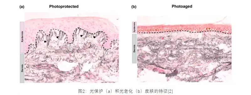 الشيخوخة الضوئية هي نتيجة التعرض طويل الأمد للإشعاع الشمسي، بما في ذلك الأشعة فوق البنفسجية (UV)، والضوء المرئي والأشعة تحت الحمراء (IR). وبمرور الوقت، سيؤدي هذا التعرض إلى أضرار تراكمية وتغيرات في الجلد وتدهور هيكلي. هذه التأثيرات هي التجاعيد، والصبغ غير الطبيعي، وتغيرات الملمس، وتضخم الأنسجة المرنة، وانخفاض الحجم، وتوسع الشعريات، وفرط التقرن، والتي تؤدي معًا إلى شيخوخة الجلد المبكرة.