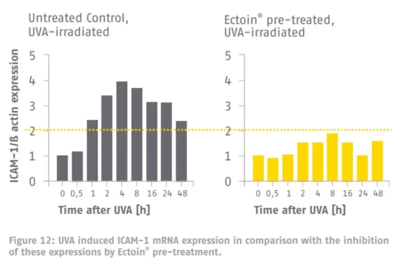 بالإضافة إلى ذلك، يمكن للإكدولين أيضًا منع التفاعل المتسلسل الناتج عن تشعيع UVA (الأشعة فوق البنفسجية ذات الموجة الطويلة) ومنع طفرة mt-DNA الناجمة عن UVA.